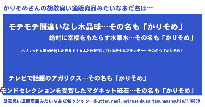 | ヘコむあだ名 | 『かりっふぃ~』『かりそめ(笑)』 |