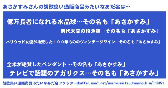 | ヘコむあだ名 | 『あさふぇ~』『あさかすみ(苦笑)』 |