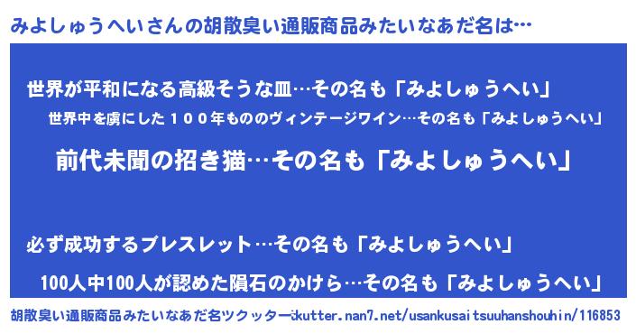 | 意味不明あだ名 | 『永久保存みよしゅうへい』 |