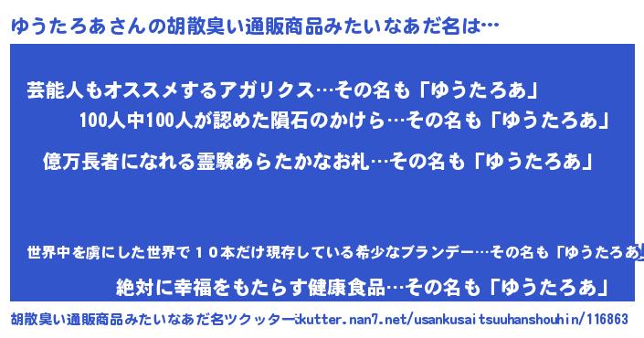 | ヘコむあだ名 | 『ゆうもー』『ゆうたろあ(爆)』 |