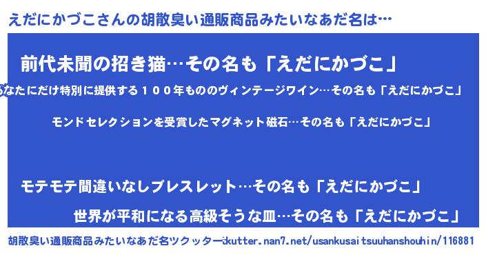 | ヘコむあだ名 | 『えだにかづこ(笑)』『酢こんぶ』 |