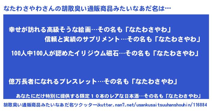| ヒーロー風カッコイイあだ名 | 『友情の使者なたわさやわ』 |