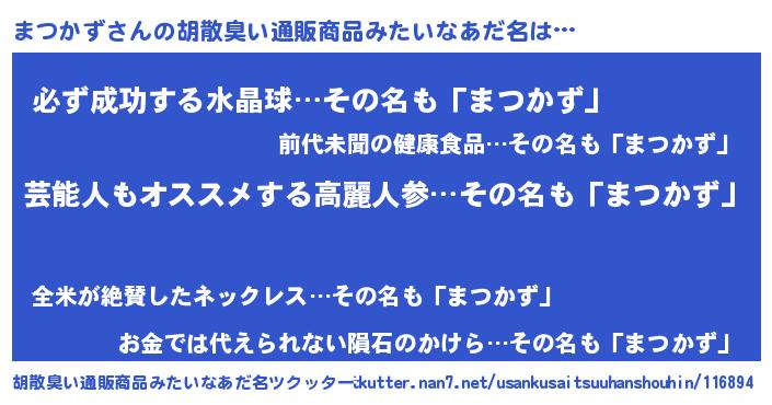 | 意味不明あだ名 | 『自称まつかず』『ペロリンまつかず』 |