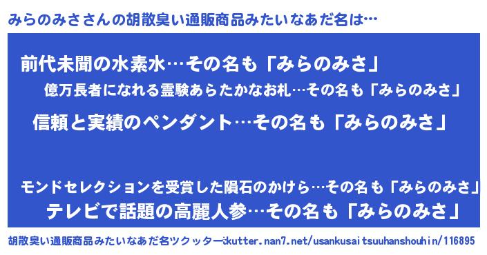| ヘコむあだ名 | 『みらぷりん』『みらのみさ(笑)』 |