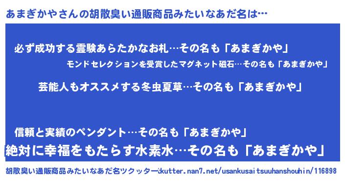 | 恥ずかしいあだ名 | 『アマギカヤデラックス』『あまちん』 |