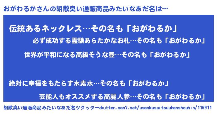 | 肩書あだ名 | 『おがわるか大統領』『おがわるか閣下』 |