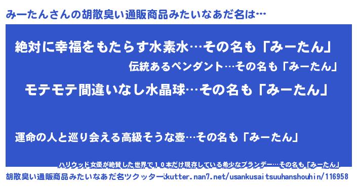 | ヘコむあだ名 | 『みーにゅー』『みーたん(爆)』 |