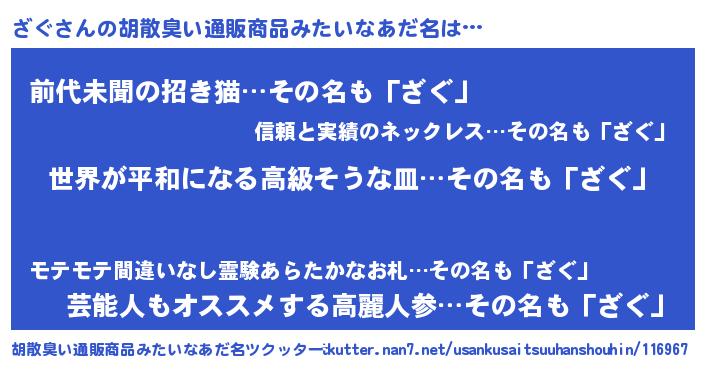 | 意味不明あだ名 | 『ざぐフォーエバー』『永久保存ざぐ』 |