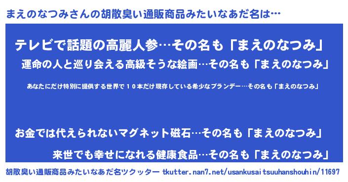 | ヘコむあだ名 | 『まえのなつみ(苦笑)』『豆乳』 |