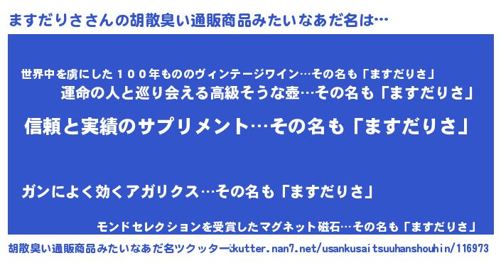 | 意味不明あだ名 | 『とにかく怪しいますだりさ』 |