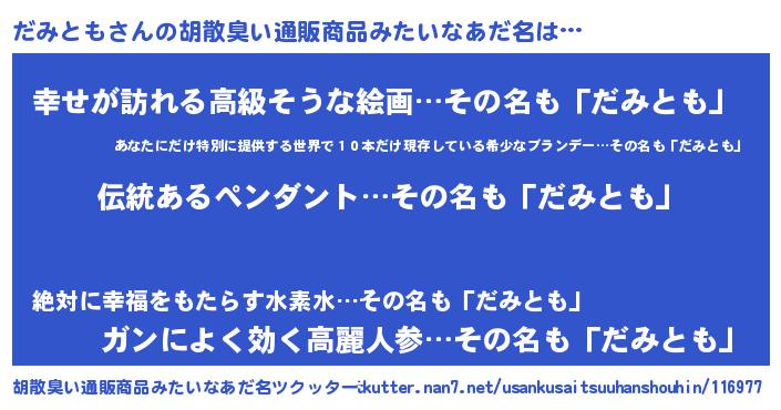 だみともさんの胡散臭い通販商品みたいなあだ名をツクッター!