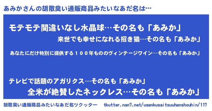 | 欧米人風あだ名 | 『ダレノガレあみか』『マイケルあみか』 |