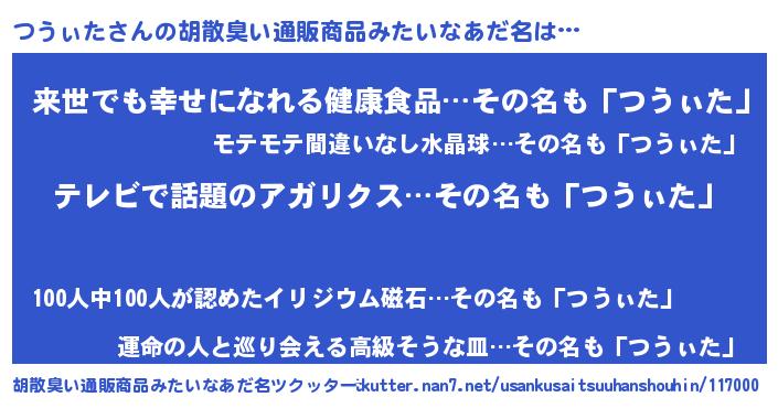 | 意味不明あだ名 | 『自称つうぃた』『永久保存つうぃた』 |