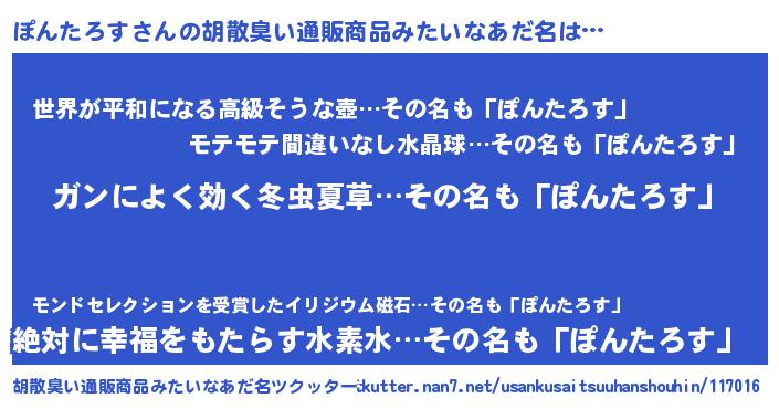 | 意味不明あだ名 | 『自称ぽんたろす』『永久保存ぽんたろす』 |