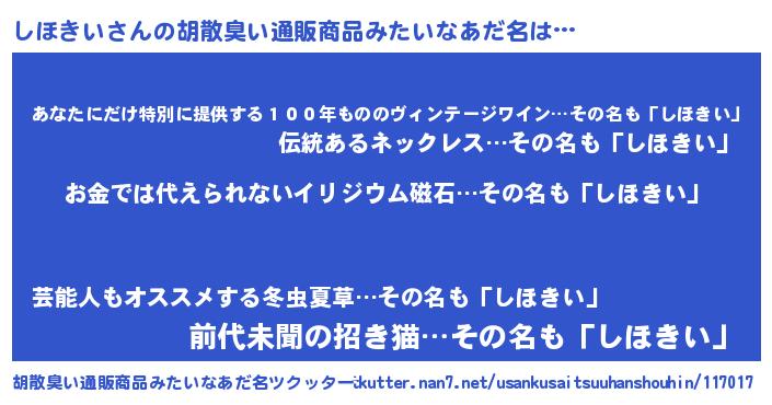 | ヘコむあだ名 | 『しほきい(笑)』『しほを』 |