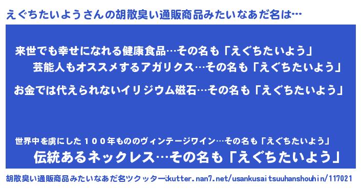 | ヘコむあだ名 | 『えぐちたいよう(爆)』『えぐっ子』 |