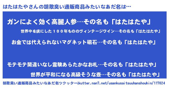 | ヒーロー風カッコイイあだ名 | 『愛の使者はたはたや』『仮面ハタダー』 |