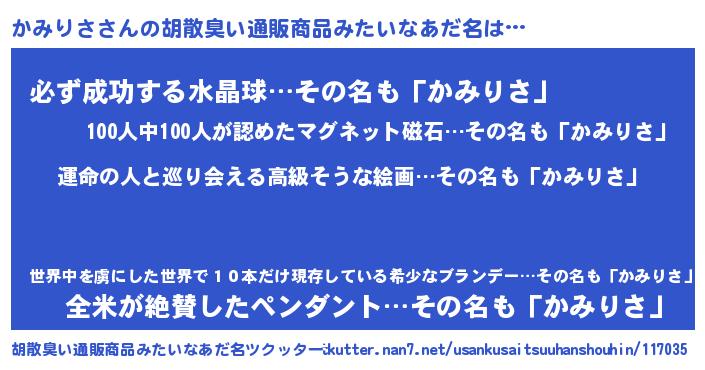| 女子向けラノベタイトル風あだ名 | 『かみりさの婚約者』『かみりさ恋絵巻』 |