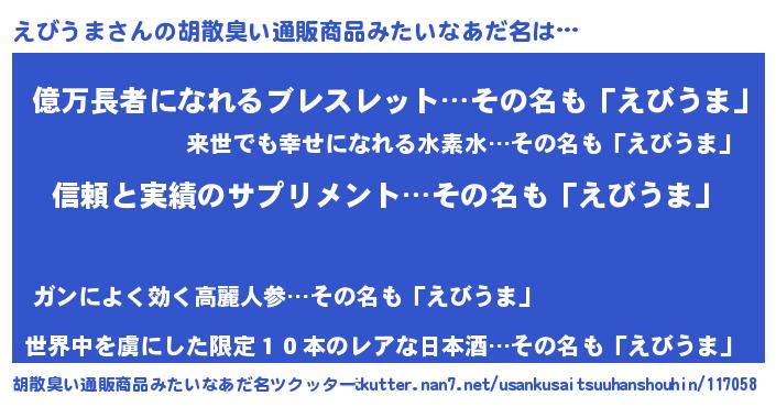 | 意味不明あだ名 | 『とにかく怪しいえびうま』 |