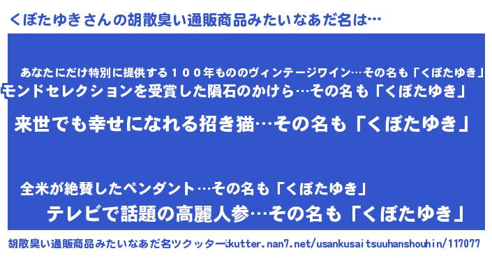 | 意味不明あだ名 | 『永久保存くぼたゆき』『自称くぼたゆき』 |