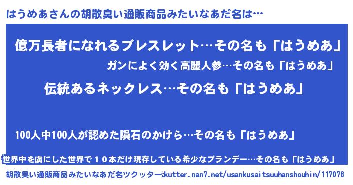 | 意味不明あだ名 | 『とにかく怪しいはうめあ』 |