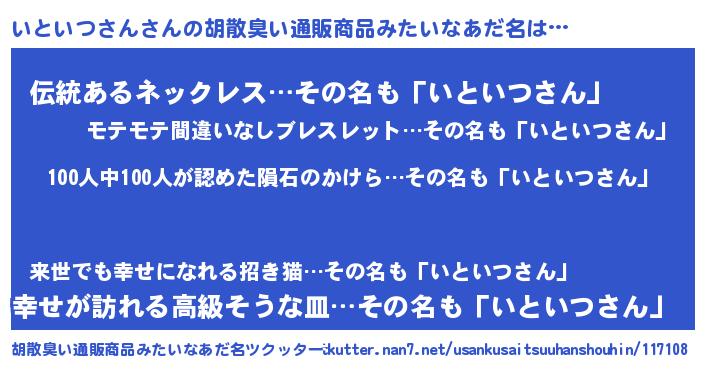 | 男性向けラノベタイトル風あだ名 | 『はたらくいといつさんさま!』 |