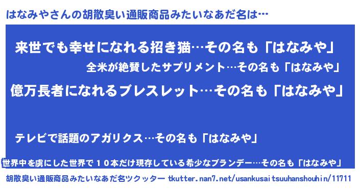 | ヘコむあだ名 | 『はなにー』『はなみや(小並感)』 |