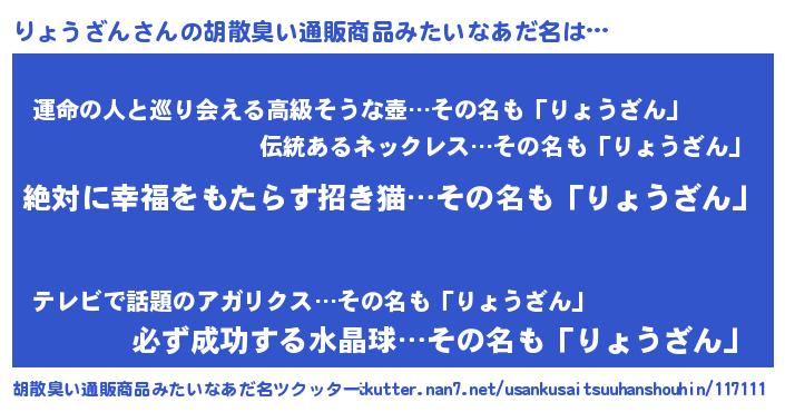 | 意味不明あだ名 | 『永久保存りょうざん』『自称りょうざん』 |