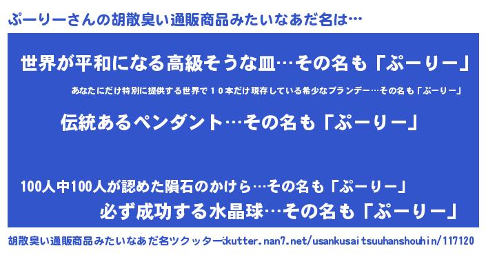 | 男性向けラノベタイトル風あだ名 | 『ダンジョンにぷーりーを求めるのは間違っているだろうか』 |