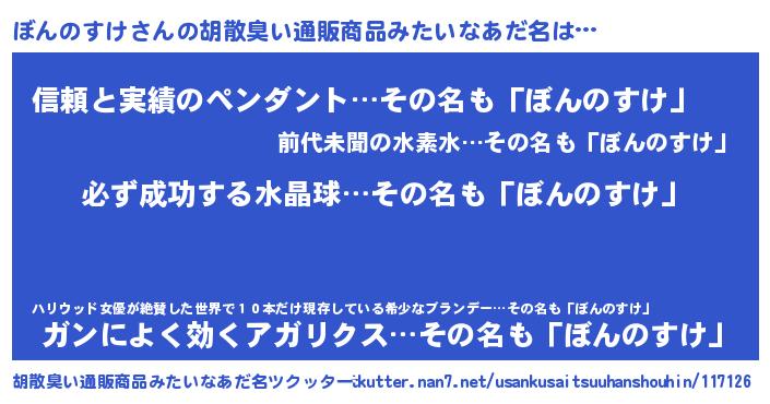 | 男性向けラノベタイトル風あだ名 | 『ぼんのすけの憂鬱』 |