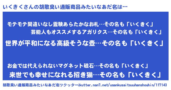 | ヒーロー風カッコイイあだ名 | 『ウルトラいくきくマン』『ネオイクキク』 |