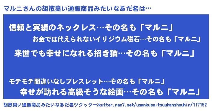 | ヘコむあだ名 | 『マルニ(小並感)』『マルっぺ』 |