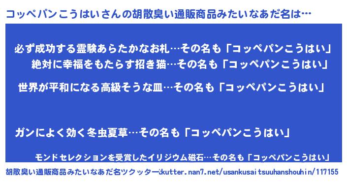| 伝説のあだ名 | 『最古の陰陽師コッペパンこうはい』 |