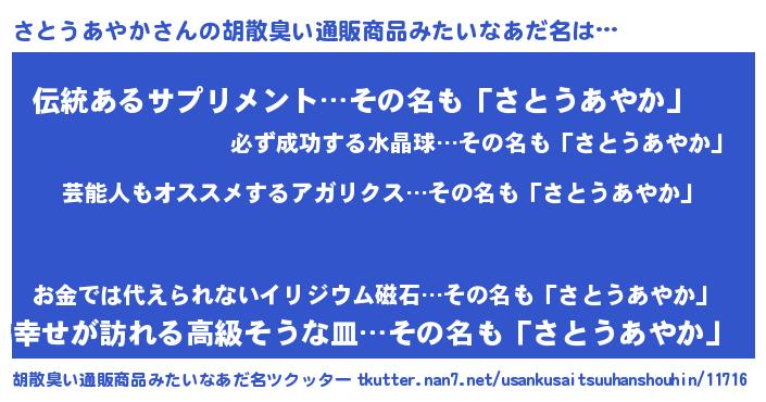 | 肩書あだ名 | 『さとうあやか総統』『さとうあやか団長』 |