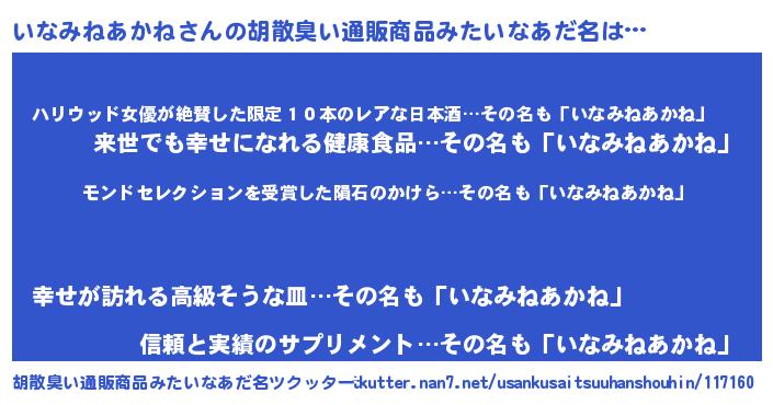 | ヘコむあだ名 | 『いなぷりん』『いなみねあかね(笑)』 |