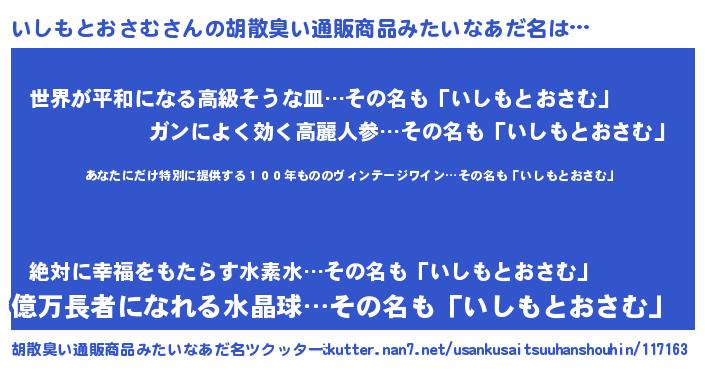 | 意味不明あだ名 | 『住所不定無職いしもとおさむ(7歳)』 |