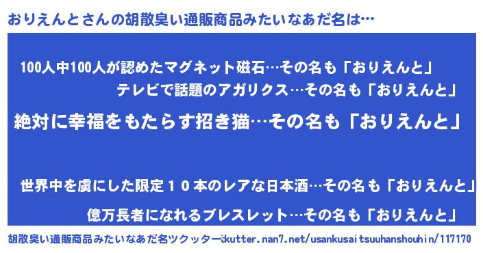 | 意味不明あだ名 | 『永久保存おりえんと』『自称おりえんと』 |