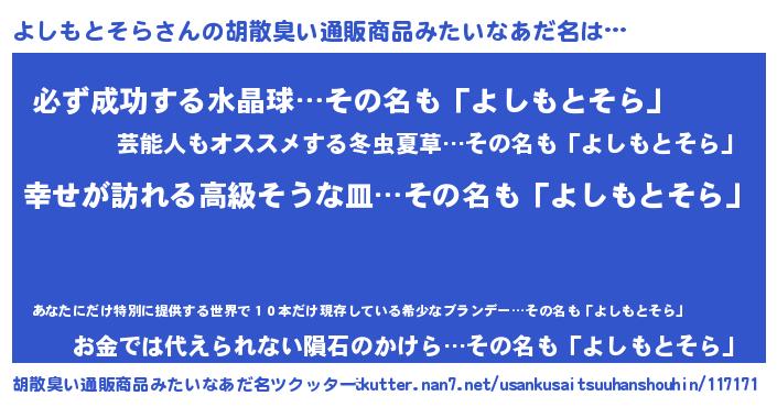 | ファンタジー風あだ名 | 『エターナルヨシモトソラー』 |