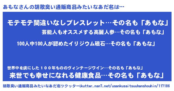 | ヘコむあだ名 | 『あももー』『あもな(小並感)』 |