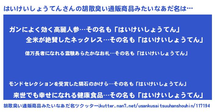 | 意味不明あだ名 | 『ペロリンはいけいしょうてん』 |