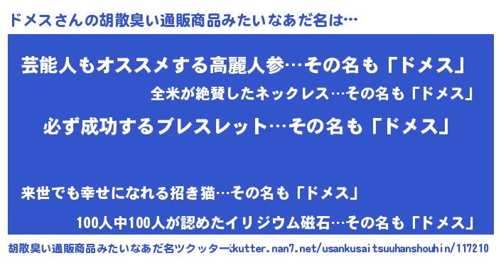 | ヘコむあだ名 | 『ドメにー』『ドメを』『ドメス(笑)』 |
