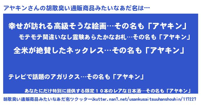 | 意味不明あだ名 | 『とにかく怪しいアヤキン』 |