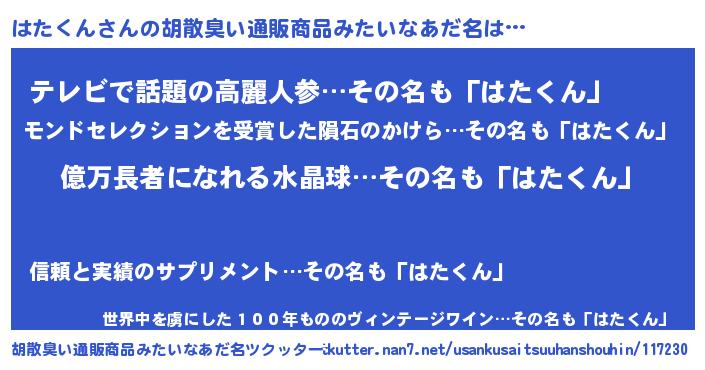 | ヒーロー風カッコイイあだ名 | 『スーパーハタクン』『仮面ハタダー』 |