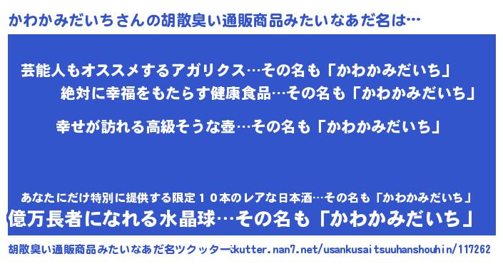 | 肩書あだ名 | 『かわかみだいち大統領』 |