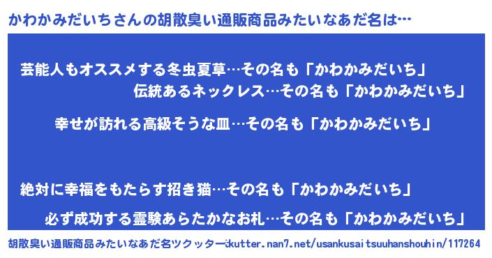 | 意味不明あだ名 | 『かわかみだいちフォーエバー』 |