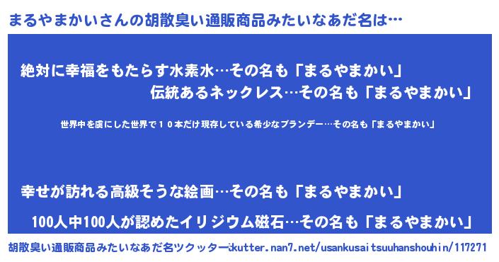 | 意味不明あだ名 | 『住所不定無職まるやまかい(81歳)』 |