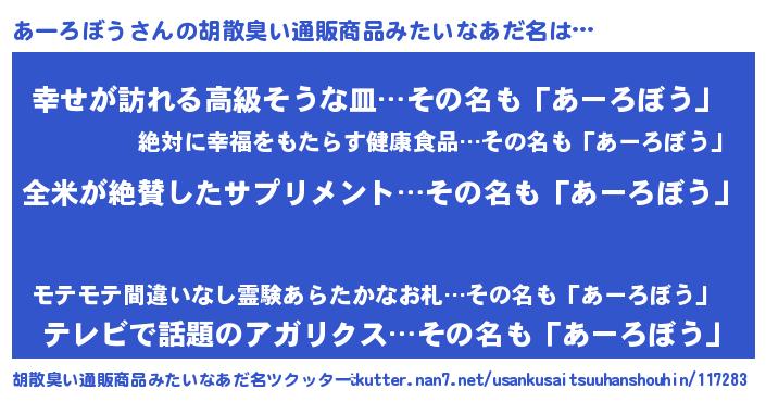 | 意味不明あだ名 | 『とにかく怪しいあーろぼう』 |