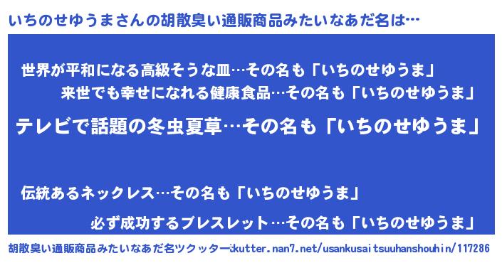 いちのせゆうまさんの胡散臭い通販商品みたいなあだ名をツクッター!
