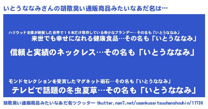 | 伝説のあだ名 | 『孤高の僧侶いとうななみ』 |