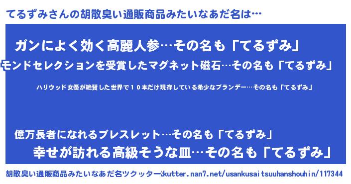 | 意味不明あだ名 | 『住所不定無職てるずみ(93歳)』 |